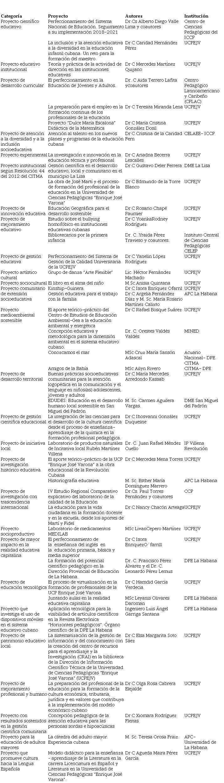 Instituciones destacadas en la Gestión Científica Educacional en la Provincia La Habana