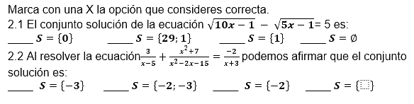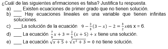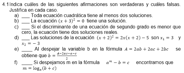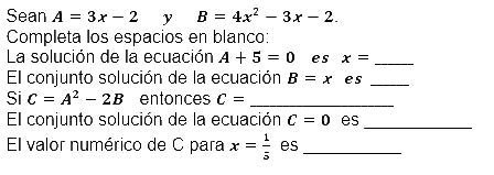 Por ejemplo, en el siguiente ejercicio se pretende reactivar los procedimientos de solución de ecuaciones lineales y cuadráticas y preparar las condiciones para la resolución de otros tipos de ecuaciones que conducen a ecuaciones lineales o cuadráticas.