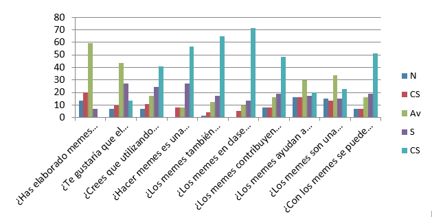 Esto concuerda con Ramos (2020), quien señala que los memes inciden de manera positiva en el desarrollo cognitivo del estudiante; por tal razón, resultan ser un elemento importante que logra viabilizar la generación de aprendizajes gracias a que posibilitan la creación de conexiones cerebrales mediante la asociación de hechos dentro de las actividades académicas.