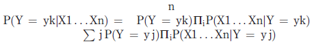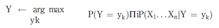 (1)Given a new occurrence Xnew = (X1 . . . Xn), equation (1) shows how to estimate the probability that Y will take on any given value, given the observed input values of Xnew and given the distributions P(Y) and P(Xi/Y) estimated fromthe training data. Ifwe are interested only in the most probable value of Y, then we have the naive Bayes classification rule as shown in equation (2):