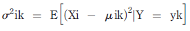 (2)However, according toMitchell (2010), "when the Xi are continuous we must choose some other way to represent the distributions P(Xi/Y)". One common approach is to assume that for each possible discrete value yk of Y, the distribution of each continuous Xi is Gaussian, and is defined by a mean and standard deviation specific to Xi and yk. To train such a naive Bayes classifier, we must, therefore, estimate the mean and standard deviation of each of these Gaussians: