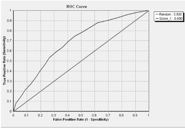 We can note that the criterion of AUC is of the order of 69 per cent. This score is superior to 50 per cent, but it is not considered a very good score.