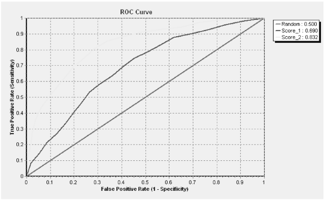 To evaluate the performance of the curve, we have to use a measure given by the AUC (Hand, 1997). The curve that has a larger AUC is better than the one that has a smaller AUC (Figure 2).