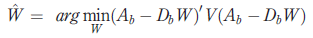 Where Ab is a (kx1) vector of pre-intervention variables that predict the outcome of interest for the treated unit, DbW is a weighted average of the pre-treatment vectors for the donor units,Wis a ( J 1) vector of positive weights that add up to one and V is a positive (k k) semidefinite matrix used to allow different weights to the predictor variables[3].