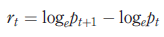 where rt is the return on securities, pt is the security price in period t and pt + 1 is the security price in a subsequent period.