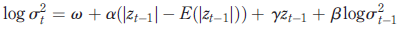 (with positive weights) of positive random variables. The model developed by Nelson (1991), called EGARCH (exponential GARCH), is expressed as follows: