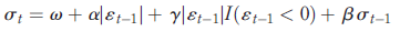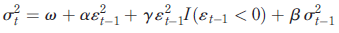 In turn, the GJR-GARCH model developed by Glosten et al. (1993) allows the conditional variance to respond differently to positive and negative events, and its equation is given by: