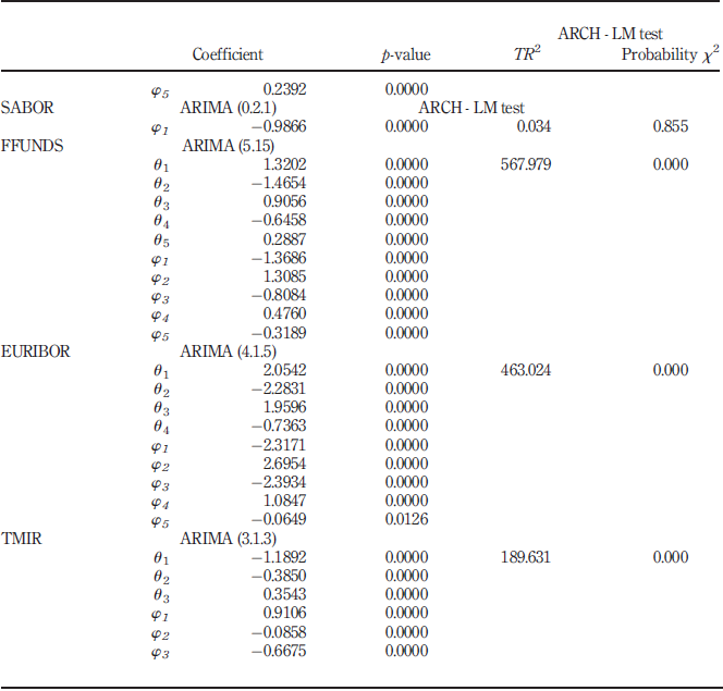 value of 0.33496 and a p-value of 0.0000. For the EURIBOR series, the model presented a