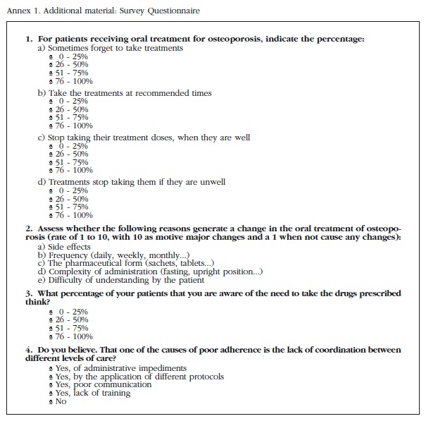 Keywords: osteoporosis, surveys, bisphosphonates, therapeutic adherence, opinion.