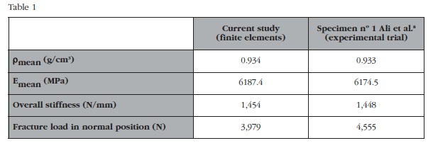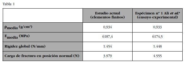 Mediante el método de los elementos finitos y un programa informático capaz de obtener la geometría y la distribución de las propiedades mecánicas a partir de un escáner CT, se puede predecir el fallo con resultados válidos en la EPF en distintas configuraciones de cargas.