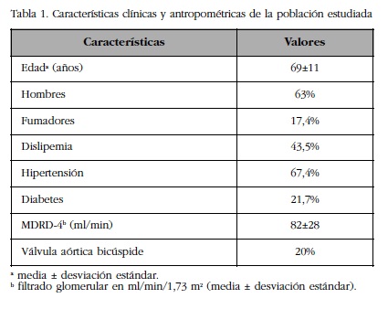 Se consideró fumador actual a cualquier individuo fumador activo durante el último año, ex-fumador a aquel individuo que haya abandonado el hábito tabáquico en un periodo mayor a un año y no fumador a aquella persona que nunca haya adquirido el hábito tabáquico. La dislipemia se definió de acuerdo al cumplimiento de alguno de los siguientes criterios: historia de hiperlipidemia diagnosticada y/o tratada con medicación, dieta y/o ejercicio, cifras de colesterol total superior a 200 mg/dl, colesterol-LDL superior o igual a 130 mg/dl, colesterol-HDL inferior a 40 mg/dl o tratamiento hipolipemiante. La hipertensión arterial se definió como el cumplimiento de alguno de los siguientes criterios: historia de hipertensión diagnosticada o tratada con medicación, dieta y/o ejercicio; presión arterial sistólica igual o superior a 140 mmHg o diastólica igual o superior a 90 mmHg, al menos en dos determinaciones; o tratamiento antihipertensivo que no es administrado como terapia a otra alteración distinta a la hipertensión arterial. Se consideró la existencia de diabetes mellitus en función de la presencia de alguna de las siguientes premisas: historia de diabetes mellitus acreditada en un informe médico, glucemia en ayunas superior o igual a 200 mg/dl en cualquier situación y síntomas de diabetes mellitus, al menos dos determinaciones de glucemia en ayunas superiores o iguales a 126 mg/dl (entendiéndose como ayunas un periodo sin ingesta de al menos 8 horas) o utilización actual de tratamientos hipoglucemiantes orales y/o insulina. La estimación del filtrado glomerular se realizó mediante la ecuación MDRD-4. La clasificación de la anatomía valvular se realizó en base a los hallazgos intraoperatorios, además de la descripción ecocardiográfica previa a la cirugía.