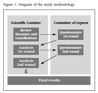 El cuestionario utilizado durante la primera ronda del método Delphi fue respondido mediante una plataforma web de acceso restringido (junio 2011), mientras que el cuestionario de la segunda ronda fue enviado y recibido vía correo electrónico (septiembre 2011).