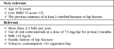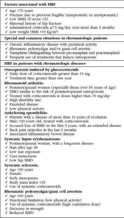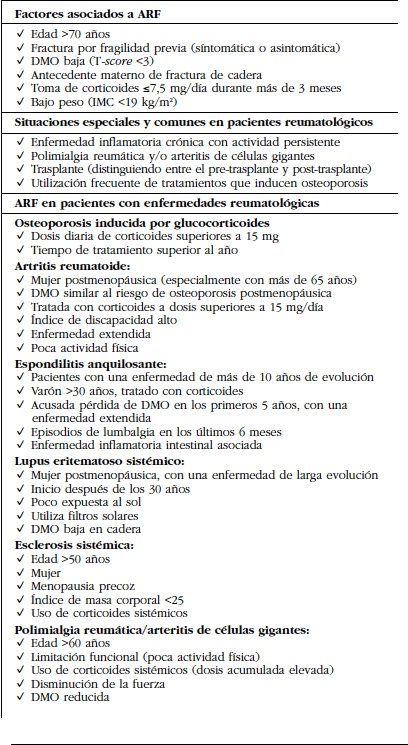 El Foro Multidisciplinar en el Manejo del Paciente con Alto Riesgo de Fractura Osteoporótica (ARF) ha sugerido clasificar los factores de riesgo de la siguiente manera [9]: