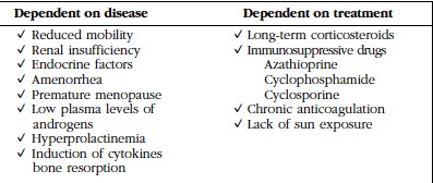 Se conoce que los sujetos con antecedentes de enfermedades autoinmunes crónicos tienen un mayor riesgo de desarrollar osteoporosis por diferentes causas, como pueden ser alteraciones específicas que inciden en el metabolismo óseo, con inducción de pérdida y en ocasiones por inhibición de formación, o por cumplir factores de riesgo clásicos, como son: sexo (predominio en mujeres), poca actividad física, enfermedad de base, tabaquismo, bajo índice de masa corporal (IMC), déficit de vitamina D, etc. (Tabla 1).