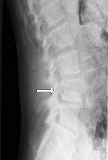 Presentamos un caso de fractura vertebral transversal secundaria a metástasis por cáncer de pulmón. Estas fracturas son muy infrecuentes y a menudo pasan desapercibidas. Pueden aparecer en pacientes con una espondilitis anquilosante y fusión vertebral 1, pero fuera de este contexto son altamente sugestivas de neoplasia subyacente. Los principales tumores a considerar son mieloma o metástasis de próstata, mama o pulmón. Otros tumores primarios menos frecuentes son riñón, colon, piel o tiroides 2, 3.