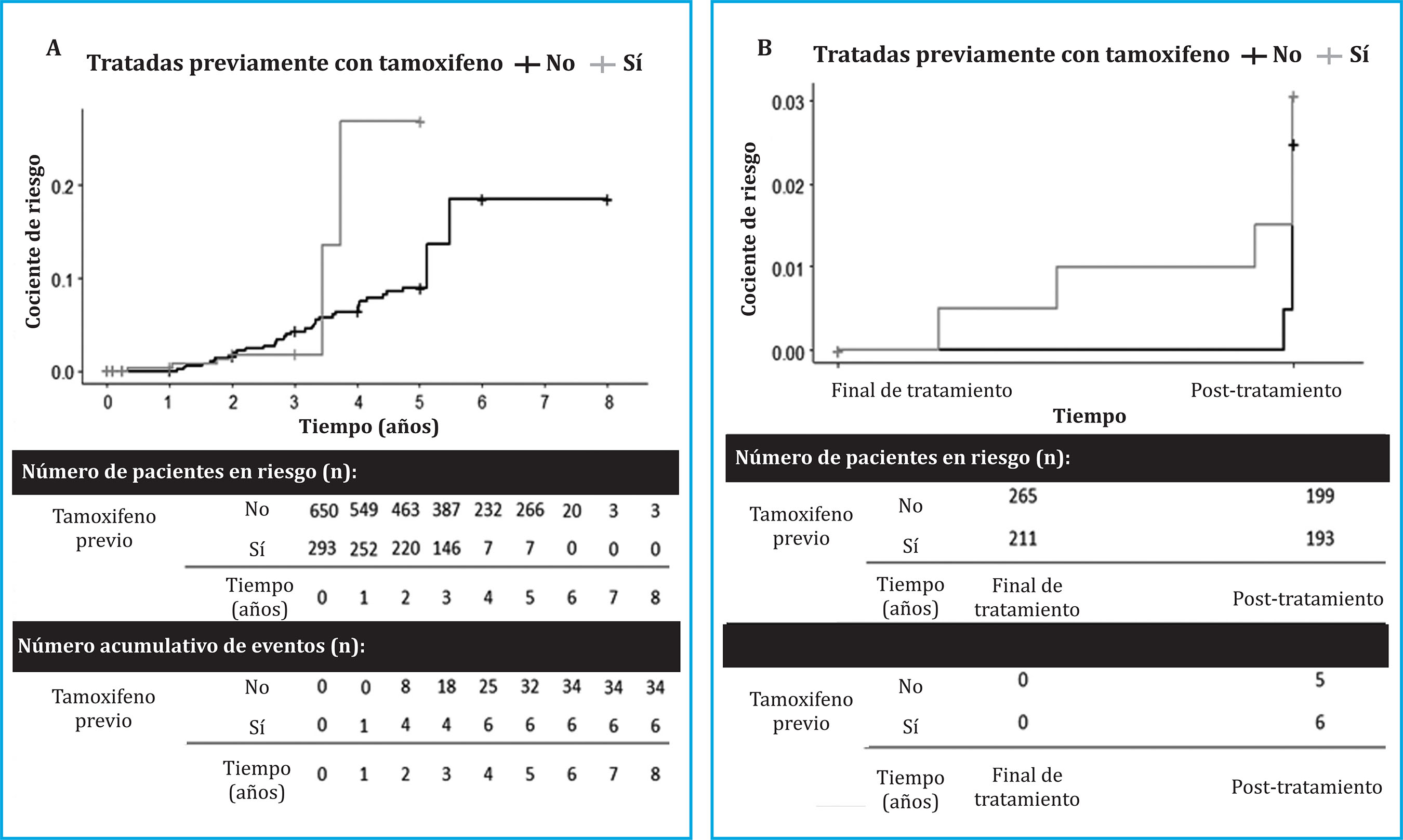 Tampoco se han detectado diferencias en el riesgo de fractura entre las pacientes con tratamiento previo con tamoxifeno y las que solo recibieron IA. Sin embargo, no se ha podido descartar un posible insuficiente tamaño muestral para detectar estas diferencias.