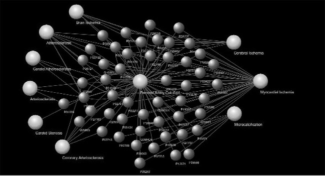 Resultados: Del total de 751 proteínas identificadas en muestras de tejido femoral calcificado, se utilizaron 71 comunes a las patologías similares. El análisis de centralidad determinó que las proteínas APOE, HP, CAT, MPO y ACTB eran las que presentaban un mayor valor en el ranking de centralidad. El estudio de la red de interacción pro- teína-proteína determinó que HSPD1, HSP90B1, SERPINC1, HADHB y PDIA3 podrían ser candidatos a considerarse marcadores subrogados de calcificación vascular.