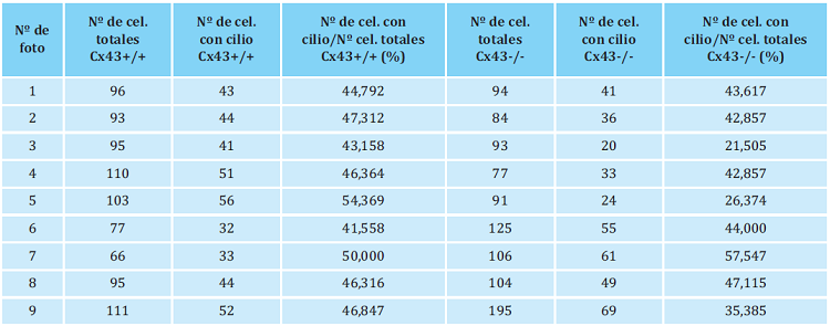 El número de células con cilio primario no varía por la expresión de Cx43.