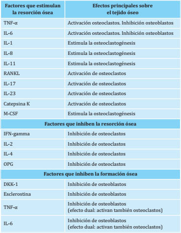 En el crecimiento y en la remodelación ósea ejercen efecto una serie de sustancias sintetizadas por células óseas, células del sistema inmune o de la médula ósea. Los factores locales más importantes son los factores de crecimiento, las citoquinas y las proteínas de la matriz ósea (Tabla 1).