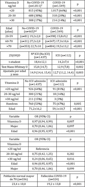 Conclusiones: La deficiencia de vitamina D en pacientes con COVID-19 se asocia a un aumento del riesgo de ingreso hospitalario y la necesidad de UCI.