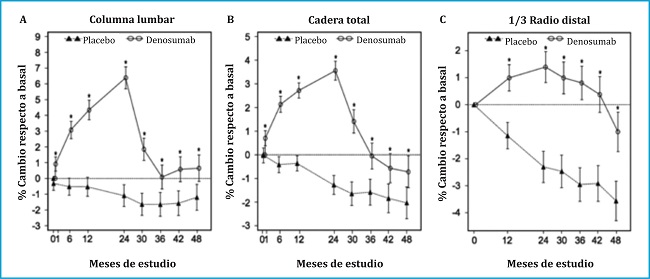 También es eficaz la secuencia ABL‐BP. En la extensión del estudio ACTIVE la administración de ALN después de ABL demostró aumentar la ganancia de DMO conseguida con ABL y mantener la eficacia antifractura51.