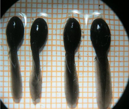 Preparación de las UE: Se consideró 40 con tres repeticiones cada una, constituida por envases de plásticos de 1 L de capacidad, con 1 L de agua y la concentración del fármaco, 10 individuos de estados inmaduros de R. spinulosa (número recomendado para estudios de toxicidad en la que se emplea como modelos a organismos como insectos, anfibios y Peces16). Con la finalidad de minimizar el efecto de factores no considerados (luz, ruido, etc.) en el estudio, las UE fueron ubicadas en un ambiente aislado a 22 °C de temperatura promedio bajo sombra, 50% de humedad y 13 h luz día. Se acondicionó dos bombas de aire para acuario de 9W, empleando mangueras de silicona de 0.3 cm de diámetro y piedras difusoras, el ingreso de aire a cada UE fue con potencia mínima para evitar formación de corrientes con el fin de no perturbar el comportamiento natural de los renacuajos.