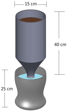 Las semillas de G. max fueron donadas por la Secretaria y Agricultura y Recursos Hidráulicos (SIAP-SAGARPA 2016), estas semillas se desinfectaron con NaClO (Hipoclorito de sodio) al 3% (v/v) por 5 min y se enjuagaron 6 veces con agua estéril, después se desinfectaron con alcohol al 70% (v/v) por 5 min y se lavaron 5 veces con agua estéril (García-González et al. 2005). Posteriormente en bolsa de plástico de 250 g las semillas de G. max se inocularon con 2.0 mL de A. lipoferum, R. etli de manera individual y/o en mezcla, ambos casos se dejaron por 24 h. A. lipoferum se aisló de raíces de Zea mays var mexicana (teocintle) en agar NFM (nitrogen free medium) (Döbereiner & Day 1974) mientras que R. etli se recuperó de nódulos de Medicago sp en agar manitol rojo congo (Peña-Cabriales & Alexander 1981, Sánchez-Yáñez 2007). Ambos géneros de BAPOCEVE pertenecen a la colección del laboratorio de Microbiología Ambiental del IIQB-UMSNH, en Morelia, Mich, México. Para este ensayo se seleccionó un 1 kg de suelo degradado y compactado con un historial agrícola de 20 años de cultivo intensivo de gramíneas (maíz-trigo, maíz-cebada), de textura arcillosa con un bajo contenido de materia orgánica de 1.5% y pobre N-orgánico pobre con 39 kg/ha, con un pH 6.7 (ligeramente acido), ubicado a los 19° 39´27´´ de latitud norte y 101° 19´ 59´ de longitud oeste, con temperatura media anual de 17.3 °C y precipitación anual de 796.4 mm, en un terreno agrícola denominado “La Cajita” de la Tenencia Zapata del Municipio de Morelia, Mich., México, ubicado en el km 5 de la carretera Morelia-Pátzcuaro. Este kg de suelo se colocó en la parte superior del sistema hidropónico conocido como jarra de Leonard mostrado en la figura 1, ahí se sembraron 4 semillas de G. max, mientras que el agua, o la SOMI con el FENI reducido al 50%, que se colocó en la parte inferior, ambas partes se conectaron por una tira de algodón de 15.0 cm. La SOMI con el FENI para alimentar G. max se preparó con la siguiente composición química (g/L): NH4NO3 12.0, KH2PO43.0, K2HPO4 3.5, MgSO4 1.5, CaCl2 0.1, FeSO4 0.5 mL/L, y un 1.0 ml/L de la solución de oligoelementos: (g/L), H3BO3 2.86, ZnSO4 7H2O 0.22, MnCl2 7H2O 1.81, K2MnO4 0.09, a pH ajustado a 7.0, en agua destilada, mientras que el NH4NO3 o FENI se redujo al 50% equivalente a 6 g/L (García-González et al. 2005).