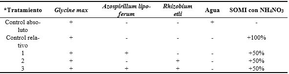 Response of Glycine max to Azospirillum lipoferum y Rhizobium etli at 50% dose of nitrogen fertilizer