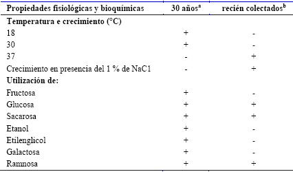 En la Tabla 6, se presenta el perfil comparativo fisiológico y bioquímico de A. vinelandii supervivientes del suelo almacenado por 30 años comparado con el mismo género y especie, recuperados de suelos recién colectados. Con base al perfil de las cepas de referencia de A. vinelandii WU-1, UW y 2489 fue similar a los aislados de A. vinelandii recuperados de suelos almacenados por 30 años, lo que confirmo que este grupo de Azotobacter pertenece a la especie vinelandii.
