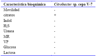 En la Tabla 7Citrobacter es un género de Enterobacterias que supervivieron al stress nutricional, baja humedad y salinidad según se reporta pueden hacerlo otros géneros de bacterias entéricas en el suelo30,34,35. El perfil bioquímico de identificación de este aislado recuperado de suelo almacenado por 30 años, comparado con la cepa de referencia C. freundii corroboro que pertenece a Citrobacter reportado en la literatura que existe en el suelo de libre de raíces, con un potencial genético benéfico para plantas silvestre del desierto30. Por lo que este es uno de los primeros reportes de la supervivencia en el suelo de este género por un periodo de tiempo de 30 años.
