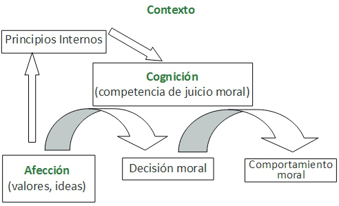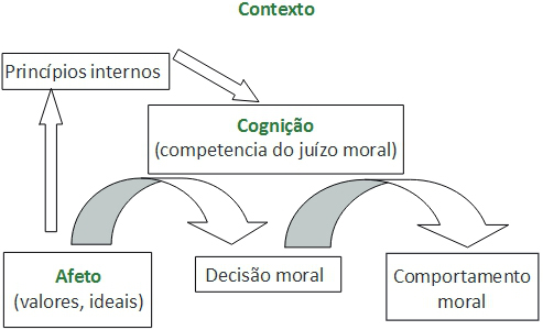 Among rationalists, the cognitive-structural trend – by far the most empirically corroborated trend in moral psychology – defends the idea that affect is the source of energy for moral action. Affect would provide the stuff of moral ideals and moral orientation, thus motivating moral behavior 11. Cognition, on the other hand, would lead this motivation towards decisive action; and it would have the function of applying moral ideals to specific situations in an organized and coherent way 12.