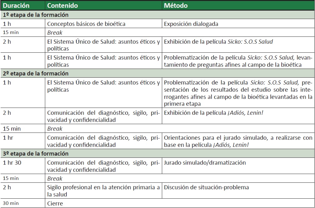 Assim, diante desse panorama, tornam-se imprescindíveis o delineamento dos problemas bioéticos e o processo adequado de formação em bioética e dirigido aos profissionais da APS, de modo a permitir a construção de ferramentas para identificação, problematização e, se possível, resolução dos dilemas éticos que emergem cotidianamente, contribuindo para o sucesso da APS/ESF e do SUS12,13. Por fim, é necessária a avaliação de todo o processo de construção realizado pelos profissionais nesse percurso1,3.