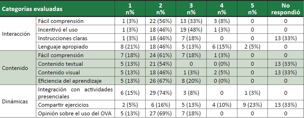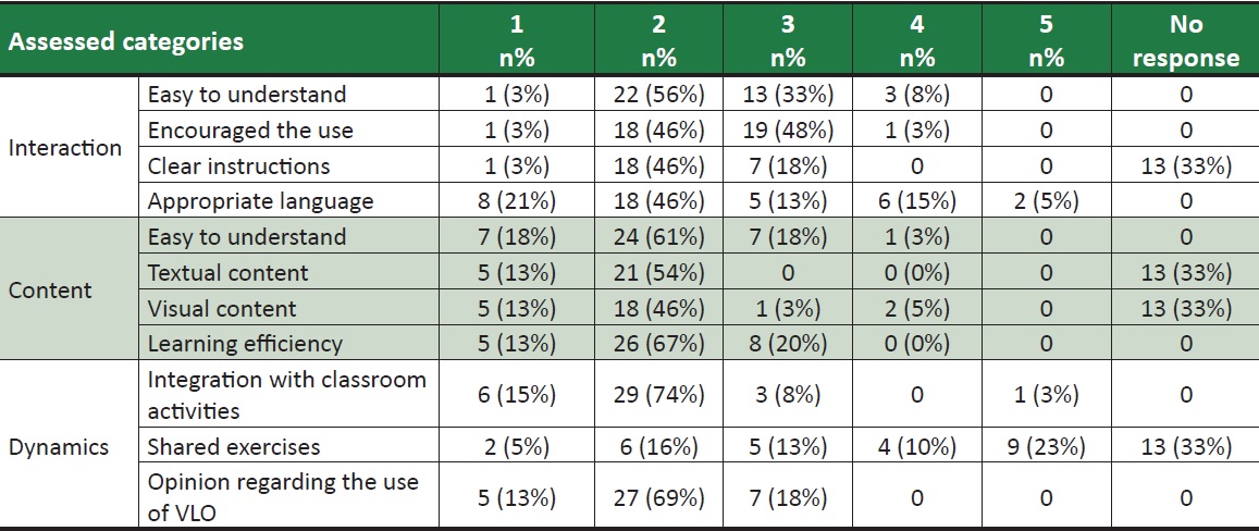 A primeira categoria do OVA avaliada relaciona-se a componentes de sua qualidade de interação. Os resultados quantitativos apresentados no Quadro 1 demonstram que os escores alcançados podem ser considerados positivos.