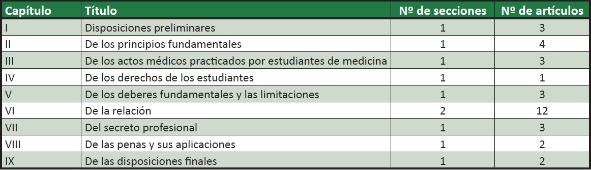 No capítulo III têm-se três artigos, sendo o artigo 8º dividido em três incisos. A temática levantada se refere aos requisitos a serem obedecidos na realização de atos médicos por parte dos estudantes de medicina, incluindo previsão de punições no descumprimento às regras estabelecidas no código. Pode-se exemplificar com o artigo 9º, que salienta que o acadêmico que praticar atos médicos sem supervisão de profissional formado em medicina deverá responder por exercício ilegal da profissão.