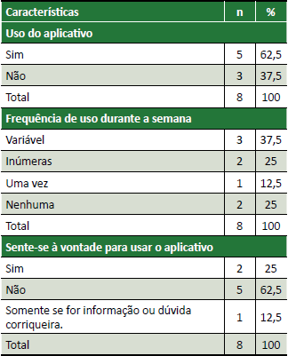 A Tabela 2 resume os dados relacionados à frequência de uso do aplicativo pelos médicos: