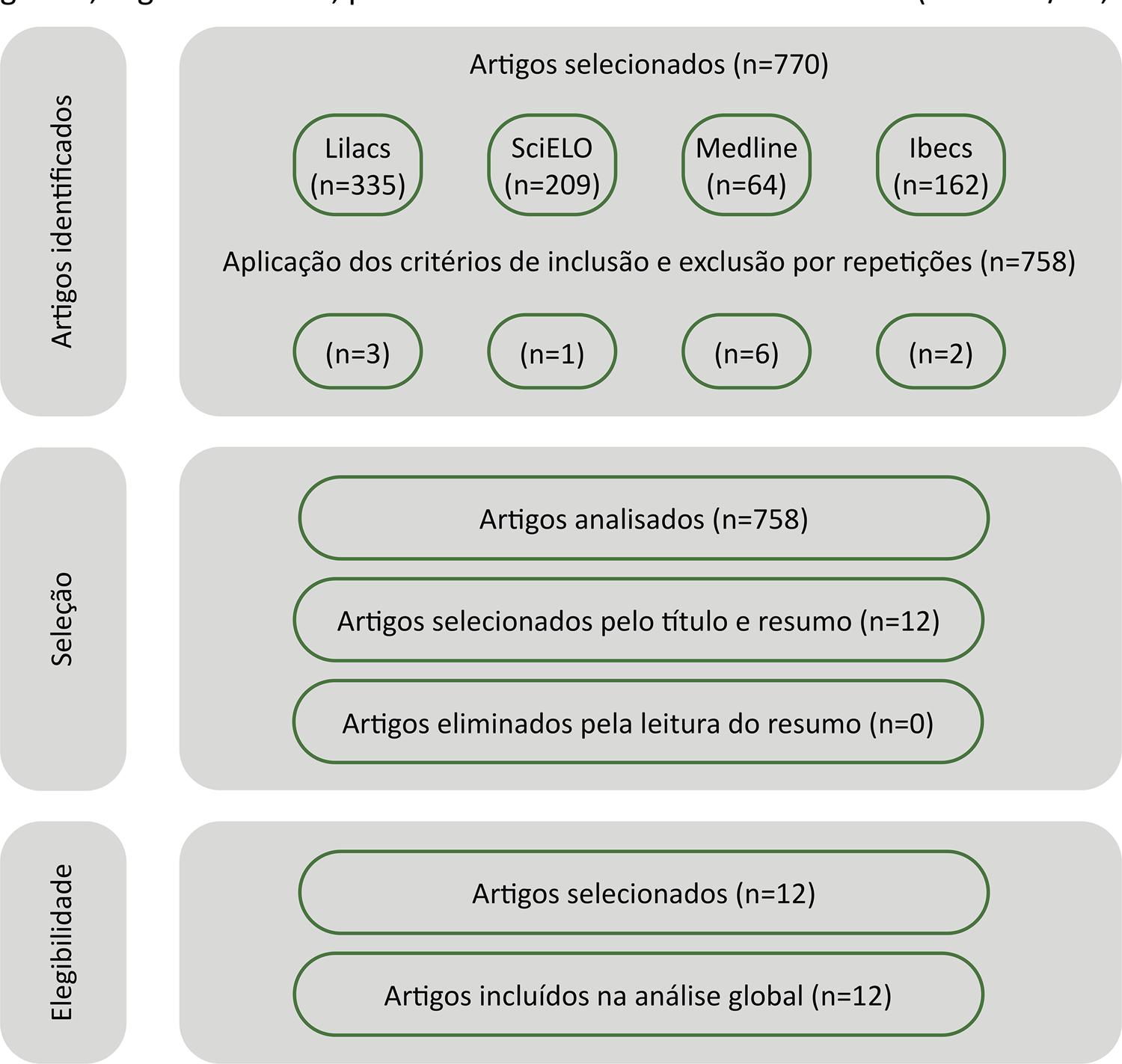 O levantamento bibliográfico foi realizado no portal da Biblioteca Virtual de Saúde (BVS), entre junho e julho de 2018, incluindo as bases de dados Literatura Latino-Americana e do Caribe em Ciências da Saúde (Lilacs), Scientific Electronic Library Online (SciELO), Medical Literature Analysis and Retrieval System Online (Medline) e o Índice Bibliográfico Español en Ciencias de la Salud (Ibecs).