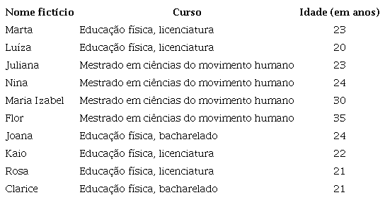 Trata-se de estudo descritivo-exploratório com abordagem qualitativa 10 , do qual participaram dez estudantes de graduação e pós-graduação do Centro de Ciências da Saúde e do Esporte da Universidade do Estado de Santa Catarina, escolhidos por conveniência. O Centro foi escolhido como cenário de pesquisa pela proximidade entre o escopo de sua atuação e o tema do filme analisado.