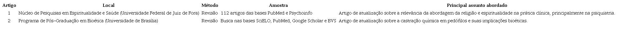 Destaca-se ainda que ambos os trabalhos analisados eram de centros ligados ao estudo específico da bioética e da área de estudo do grupo. É possível que outras áreas, como a própria psiquiatria, não estejam explorando devidamente o campo da ética médica. Caso se confirmasse, esse problema poderia ser abordado, por exemplo, a partir de incentivos aos estudos de graduação e pós-graduação, incluindo parcerias e articulações interinstitucionais.