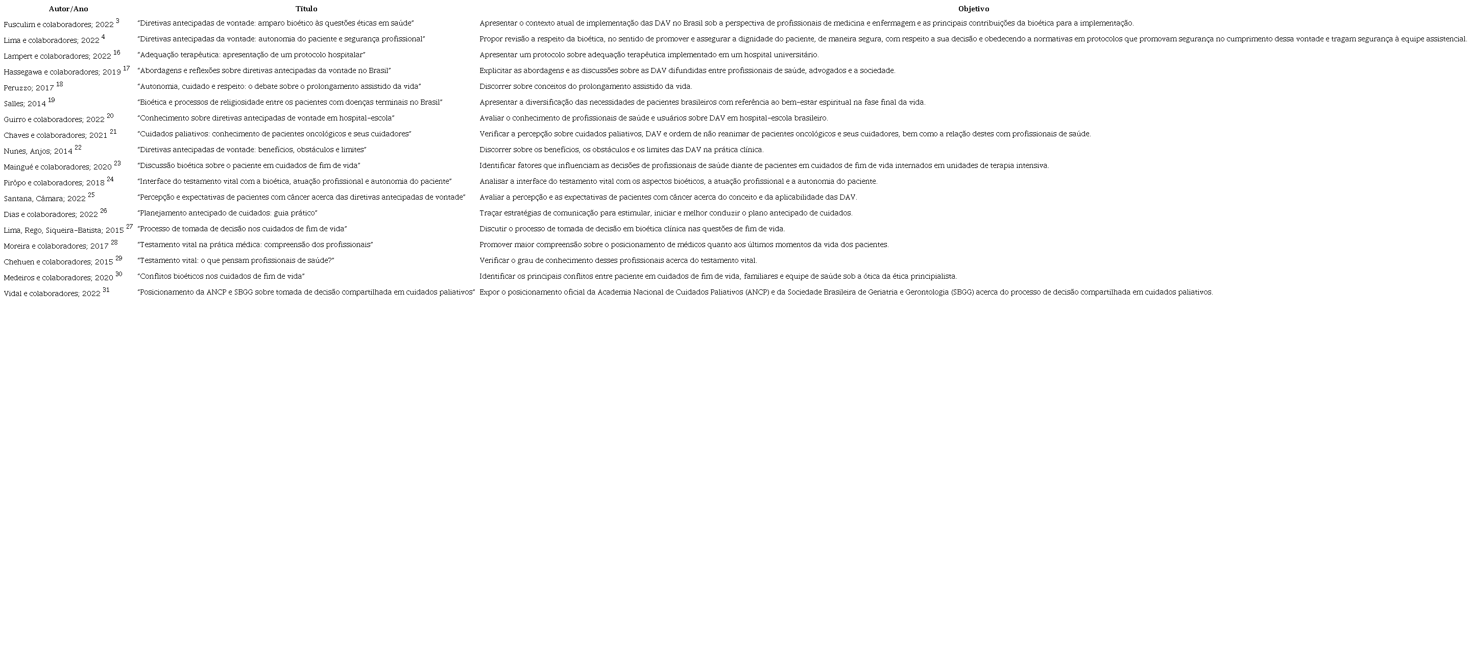 Para a análise dos resultados, o Quadro 1 apresenta os estudos encontrados acerca do contexto brasileiro sobre DAV e cuidados paliativos.