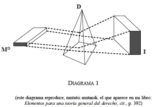 Esto puede fácilmente apreciarse en el siguiente diagrama en el cual se representa cómo se reformula (interpreta) el material jurídico a través del "prisma" de su doctrina: