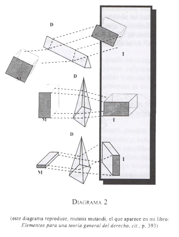 En el diagrama 2 claramente se aprecia que los prismas no son (necesariamente) iguales y que no observan el material desde el mismo ángulo (perspectiva). A veces magnifican ciertas características, a veces las minimizan; otras, las ignoran. Los resultados de la interpretación dogmática, sin embargo, son puestos en relación dentro de un meta-modelo doctrinal tal, haciéndoseles aplicable una doctrina común.