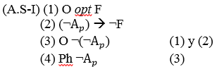 La proposición (1) constituye la premisa normativa. Allí se halla representada la obligación de optimizar al fin legítimo “F”. La proposición (2) es una premisa empírica que indica que la adopción de una medida alternativa “ ” contribuye con la realización del fin “F” de igual manera que la omisión “¬ ”. Por último, (3) es la conclusión. Esta indica que, en razón de (1) y (2), están ordenadas, disyuntivamente, o bien la medida alternativa “ ” o bien la omisión “¬ ”, puesto que son indiferentes con respecto a “F”.