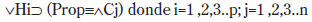 Lo cual significa que si se realiza cualquiera de los supuestos H¡, entonces se tiene la propiedad de un objeto si y sólo si se da la conjunción de las consecuencias Cj.4
