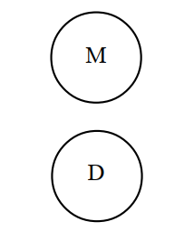 Ahora voy a pasar muy rápidamente a otro tema: ¿cuál es la relación existente entre la ley y la moral? Hay en principio varias relaciones posibles entre derecho y moral. Una posición al respecto es la del positivismo lógico. Este movimiento no tiene nada que ver con el positivismo filosófico, o tiene muy poco que ver con el positivismo que no es el lógico, entre otras cosas porque Kelsen no sabía, según me dice Eugenio Bulygin, ni una palabra de lógica moderna. Y nos lo confirma aquí, con la autoridad que tiene sobre el tema, Francisco Miró Quesada. Eso me libra de tener que probarlo. Según Kelsen la moral y el derecho son totalmente disjuntos, no tienen nada que ver el uno con el otro, la ley es la ley, y hay que ajustarse a ella. La representación gráfica de esta posición es la siguiente: