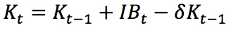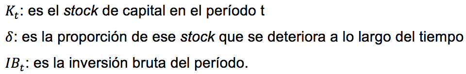 El segundo componente de la tasa de ganancia es el stock de capital. En el caso de los Estados Unidos existe una medida neta que se utilizará como base, mientras que en el caso venezolano no existe una medición oficial, por lo que para estimar el capital se utiliza la siguiente expresión: