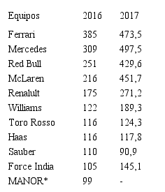 En la Tabla se aprecian las inversiones de las diez escuderías en los años seleccionados. El orden de magnitud de la inversión por temporada habla por sí solo del poderío que tiene este imperio deportivo.