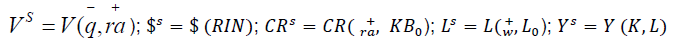 𝑤, 𝑟𝑎, 𝑟𝑑, 𝑟𝑓, 𝑞, 𝐿0, 𝐾𝐵0 , 𝑋 , 𝐺, 𝐷𝑝𝑟 ; en donde 𝐿0 es la población demográficamente activa; 𝐾𝐵0 el capital bancario; X las exportaciones; G el gasto gubernamental y Dpr la depreciación.