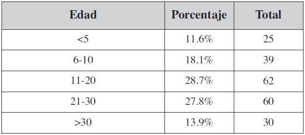 De los 216 cuestionarios contestados, la franja de edad predominante correspondió a la de los 46 a 55 años, con un 34.7%. El 87% de los encuestados eran mayores de 35 años (Tabla I).
