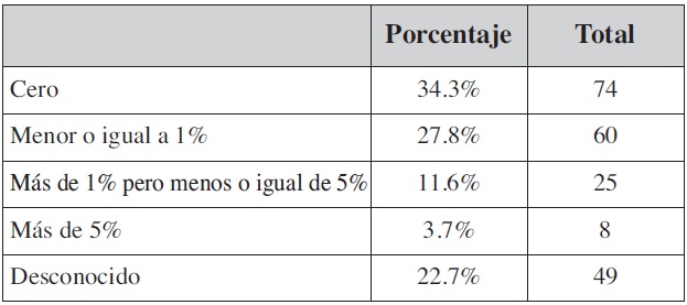 La mayor parte de los encuestados, un 45.8%, refieren no haber tenido ningún caso de doble cápsula, y un 33.8% haber tenido doble cápsula en menos del 5% de sus pacientes (Tabla X).