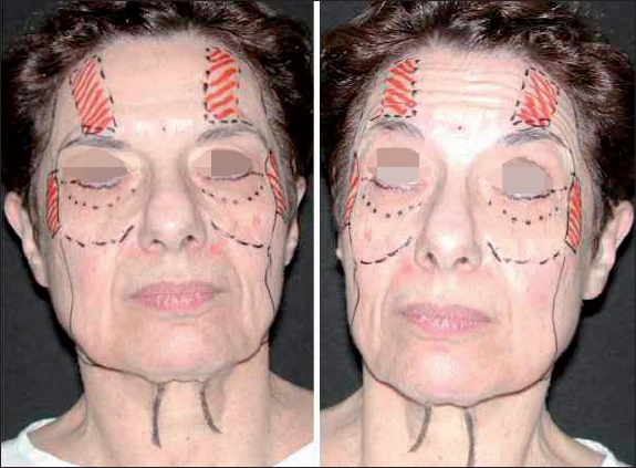 Hasta el empleo de la toxina botulínica se utilizaron diversos procedimientos quirúrgicos sobre el área frontal para tratar las líneas de expresión y las arrugas. Ya Marino, en 1964, realizó con este fin la incisión del músculo frontal sin ninguna resección muscular para direccionar la adhesión subcutánea y la galea,(1) y más tarde Pitanguy, en 1981, realizó incisiones verticales y horizontales en la aponeurosis.(2) Otros autores recomiendan la resección de una porción de músculo frontal del área media facial, la región más común de formación de arrugas, manteniendo los músculos frontales sobre la ceja para conservar la normal expresión facial.(2)